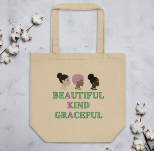 "Beautiful. Kind. Graceful." Organic Cotton Tote Bag