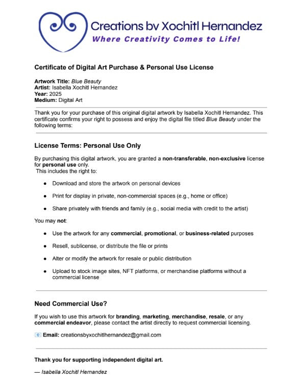 “Blue Beauty” (Digital Art with Personal Use Certificate)