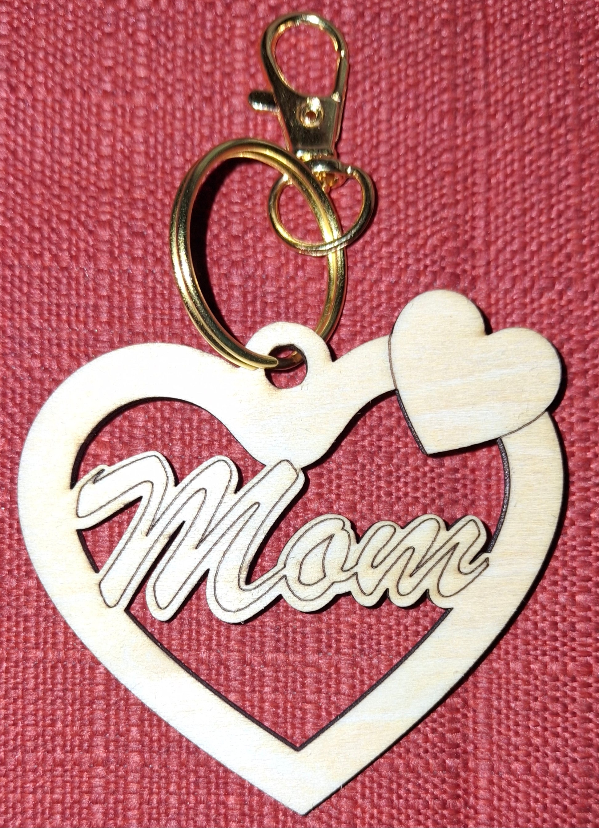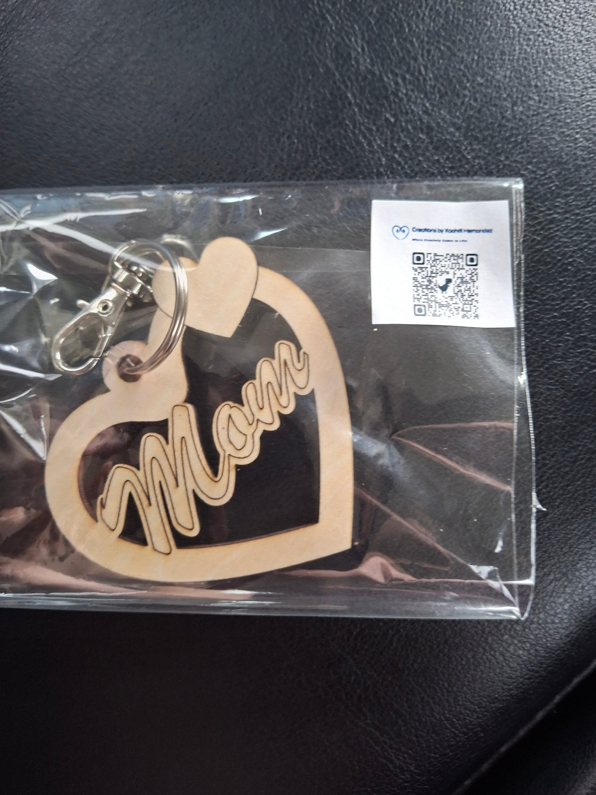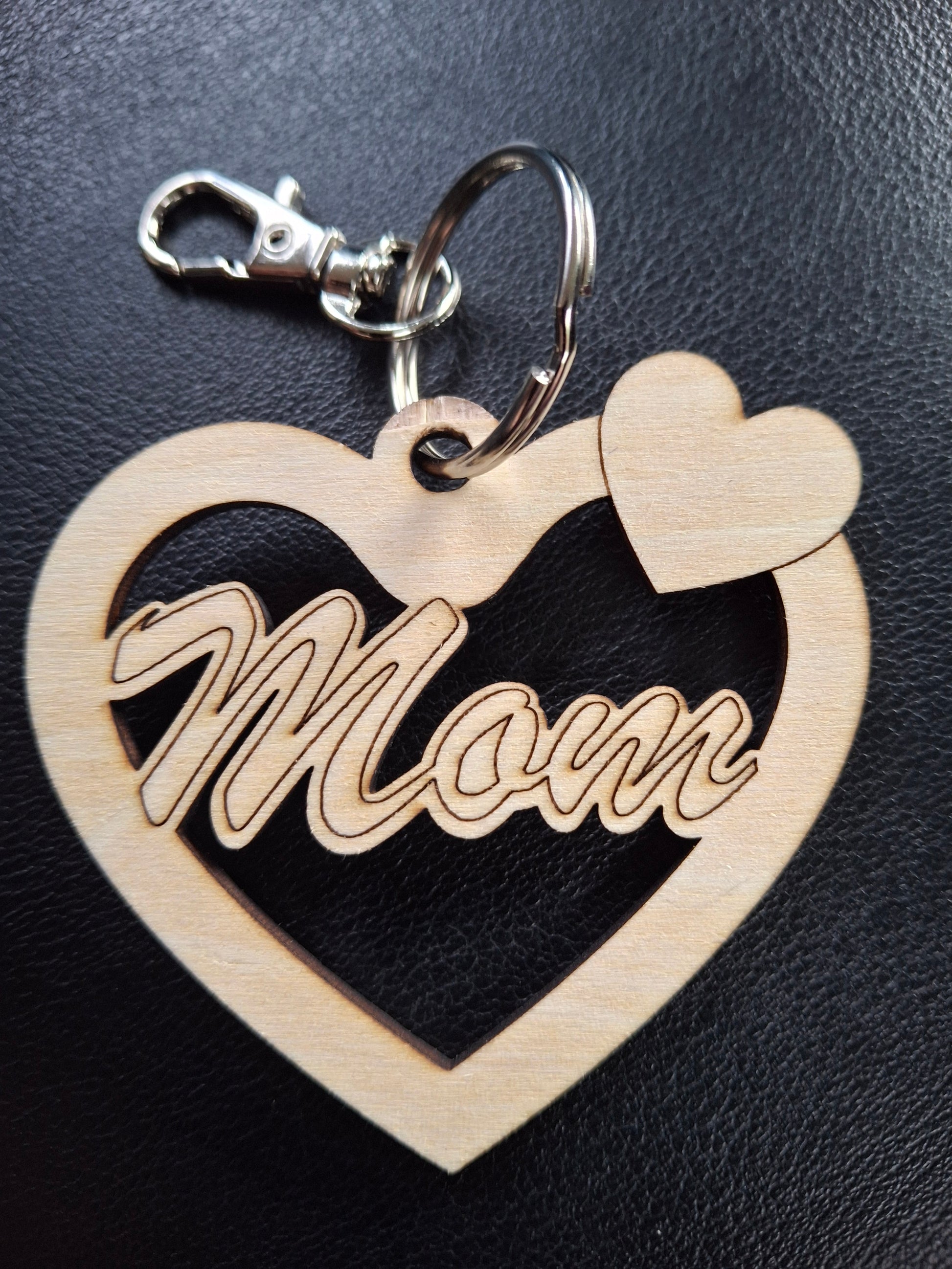 Show your love with this beautiful wooden Mother's Day keychain, thoughtfully designed for Mom. Featuring the word "Mom" delicately crafted inside a charming heart shape, this keychain combines natural wood elegance with heartfelt design. Lightweight, durable, and perfect for everyday use, it’s a sweet reminder of your appreciation she can carry wherever she goes.