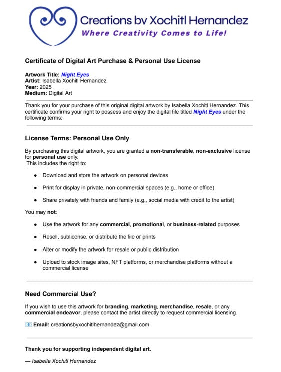 "Night Eyes" (Digital Art with Personal Use Certificate)