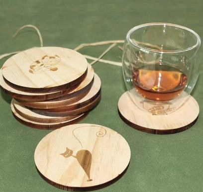 Create a one-of-a-kind statement with our handcrafted coaster set, available in premium black slate or natural wood. Each coaster is laser-engraved with your custom design—whether it's your favorite team, a special message, the family name, or a meaningful symbol—bringing a bold, timeless touch to any space.