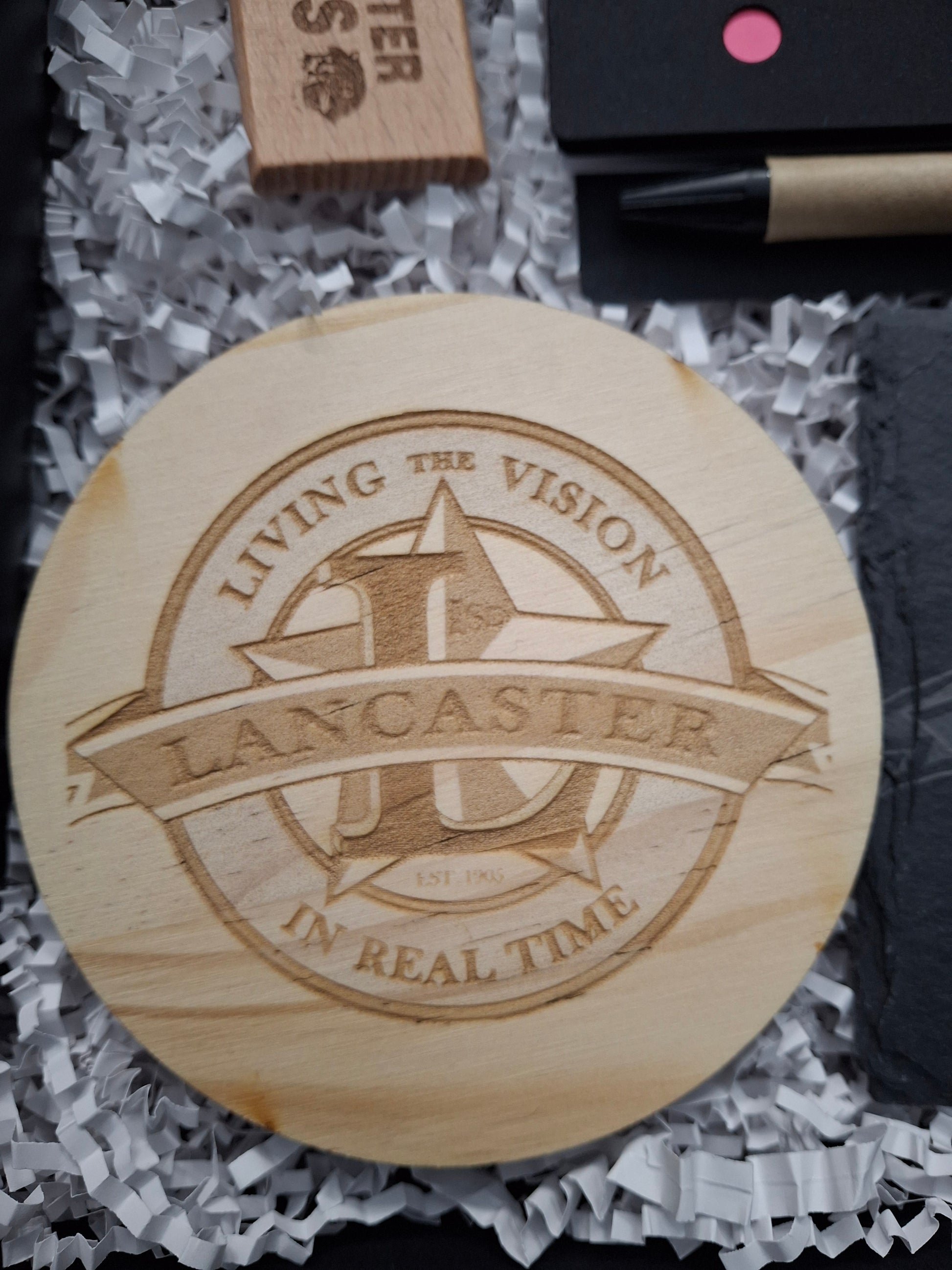 - (1) Custom Coaster- Functional and unique, engraved with your custom message—perfect for home or office use (Options are: Wood or a Black Slate)