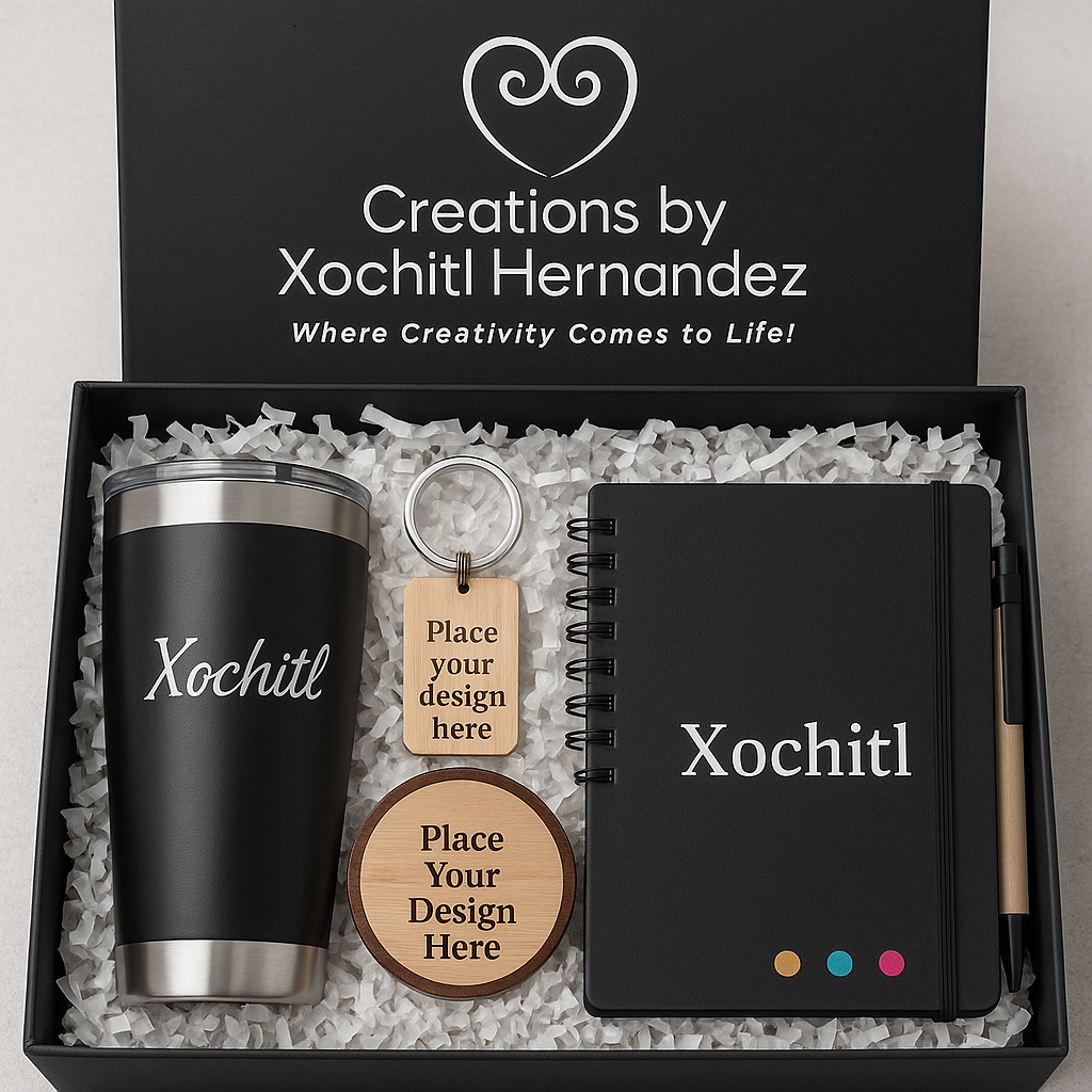 Where creativity meets personalization. Surprise someone special with this beautifully curated Executive Gift Box by Creations by Xochitl Hernandez. Thoughtfully designed and fully customizable, this elegant black set is perfect for birthdays, holidays, corporate events, or everyday appreciation.