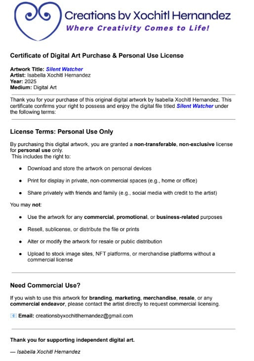 "Silent Watcher"- (Digital Art with Personal Use Certificate)