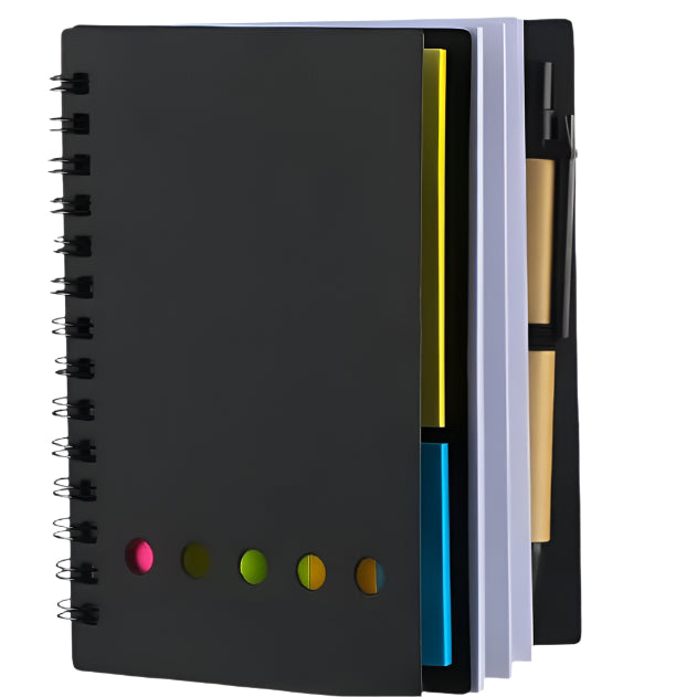 - (1) Custom Spiral Notebook + Pen- A stylish black notebook engraved with a name or phrase, complete with an attached pen for daily journaling or note-taking engraved with a name (up to 60 characters)