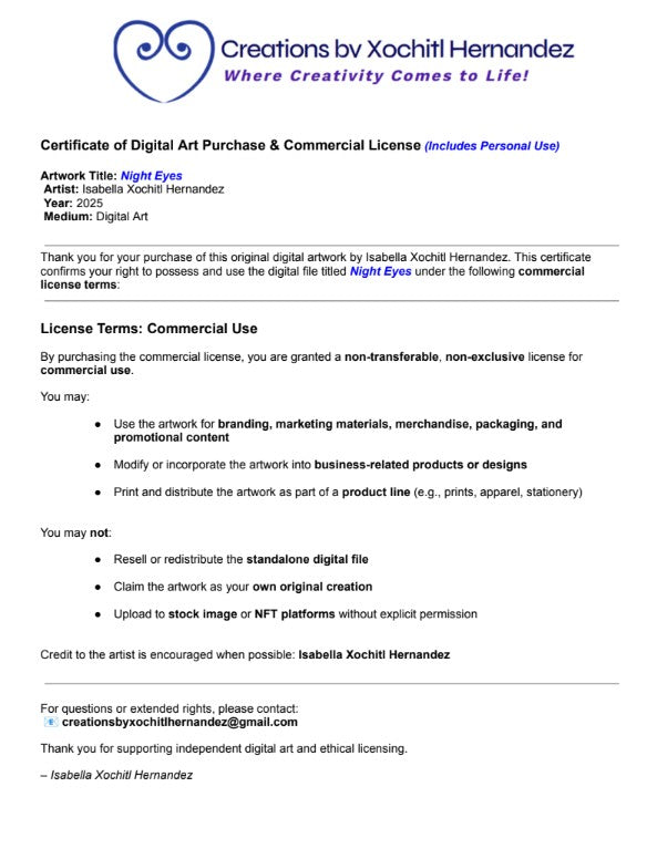 "Night Eyes" (Digital Art with Commercial License Certificate)